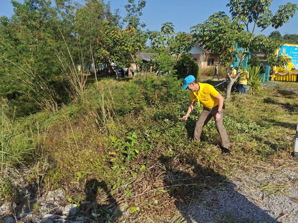 ข้าราชการตำรวจจิตอาสา สภ.งาว ร่วมจิตอาสาพัฒนาฯ เนื่องในวันคล้ายวันพระบรมราชสมภพ พระบาทสมเด็จพระบรมชนกาธิเบศร มหาภูมิพลอดุลยเดชมหาราช บรมนาถบพิตร วันชาติและวันพ่อแห่งชาติ