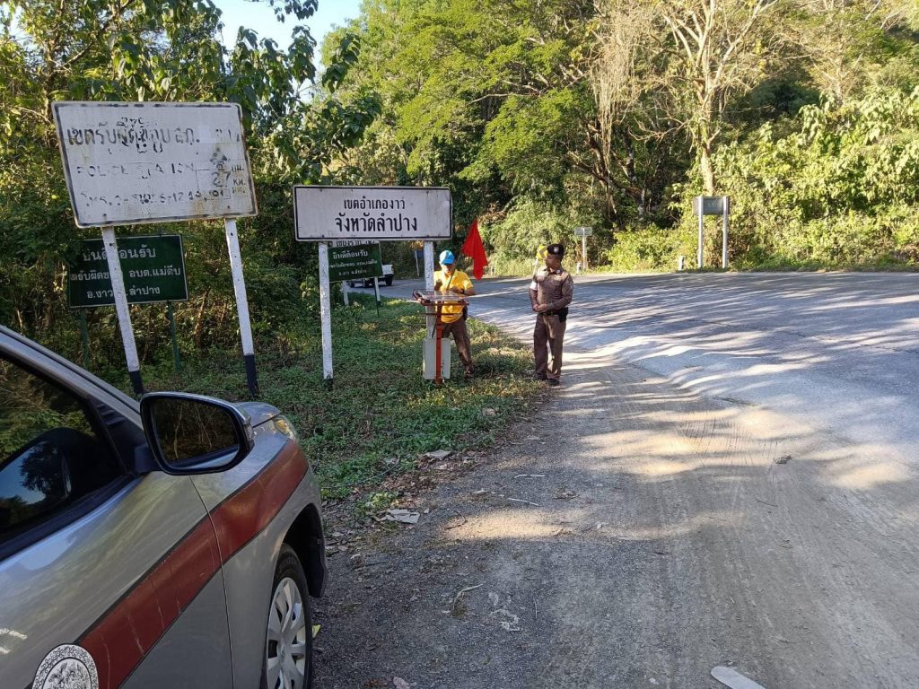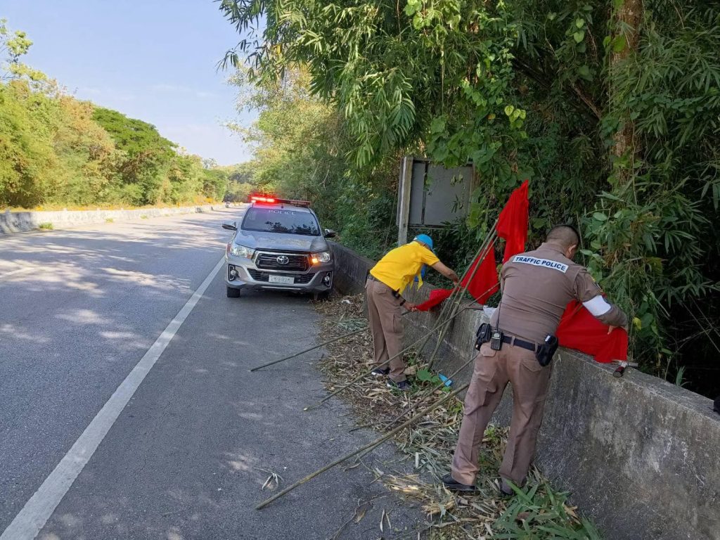 งานจราจร ออกสำรวจจุดเสี่ยง และติดตั้งป้ายเตือน ,สัญญาณ(ธงแดง) เพื่อแจ้งเตือนผู้ใช้รถใช้ถนน เพื่อป้องกัน และลดอุบัติเหตุทางถนนช่วงเทศกาลปีใหม่ 2568