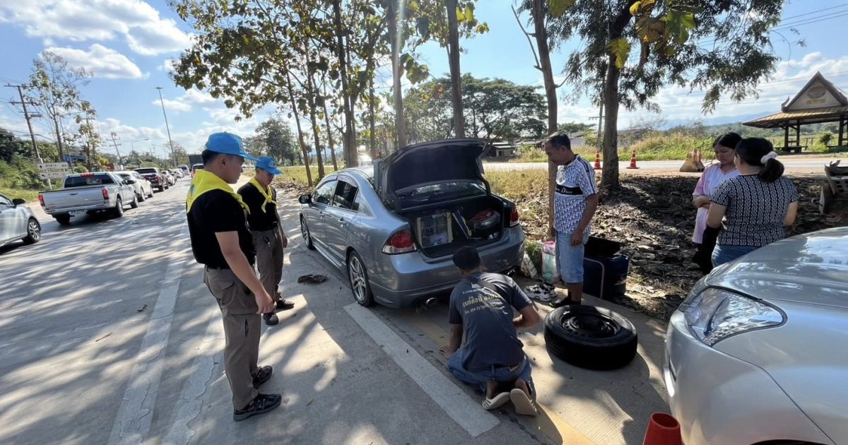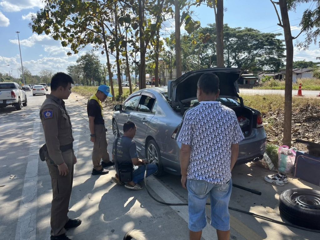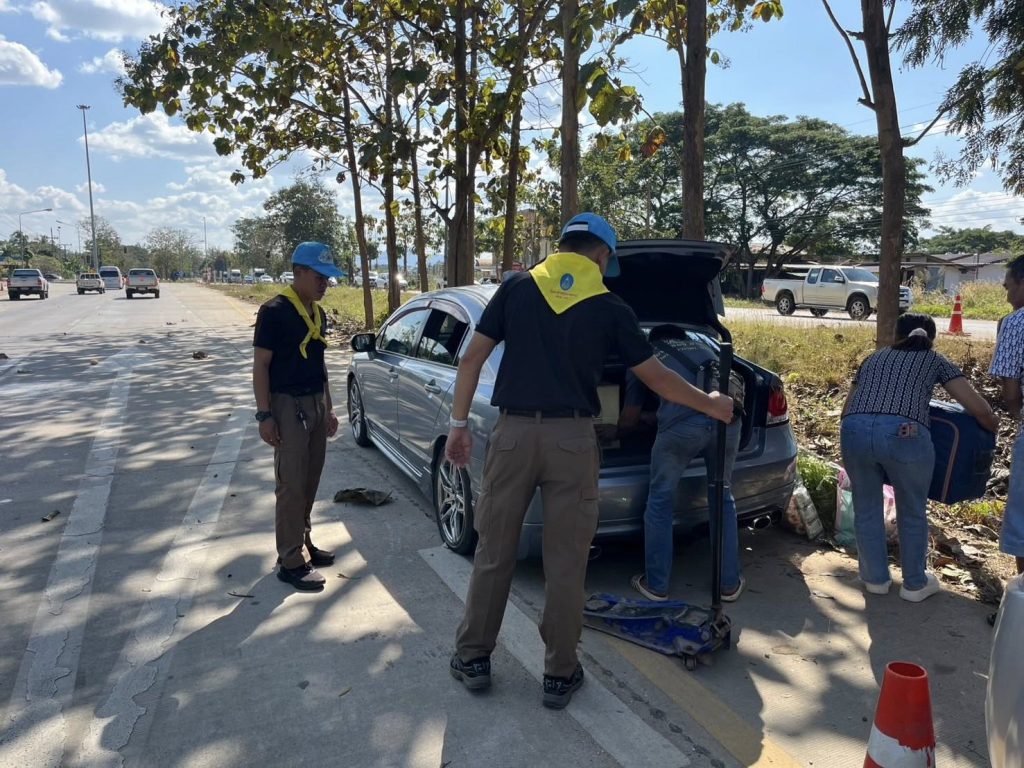ด่านนาแก ชป.ที่3 พร้อมเจ้าหน้าที่ตำรวจจิตอาสา ได้มีประชาชนมาขอความช่วยเหลือรถยางแตก