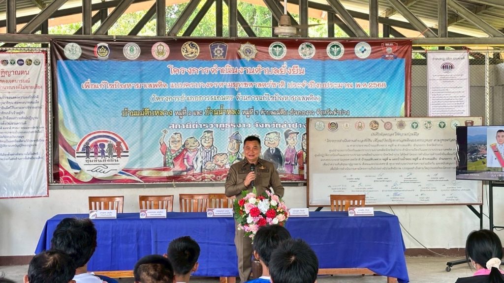 พล.ต.ต.ธนะรัชต์ ชุ่มสวัสดิ์ รอง ผบช.ภ.5 พร้อมด้วยคณะตรวจติดตาม ประเมินผลโครงการดำเนินงานตำบลยั่งยืนเพื่อแก้ปัญหายาเสพติดแบบครบวงจรตามยุทธศาสตร์ชาติ ประจำปี 2568