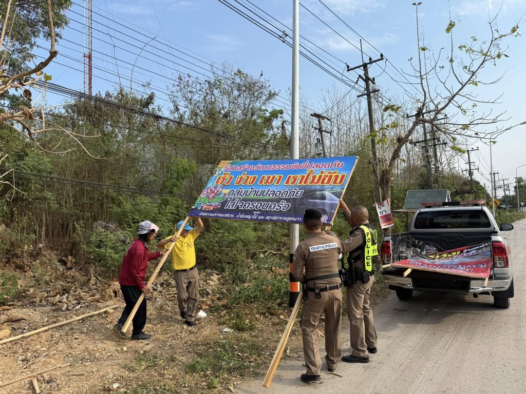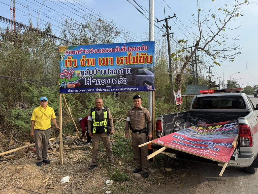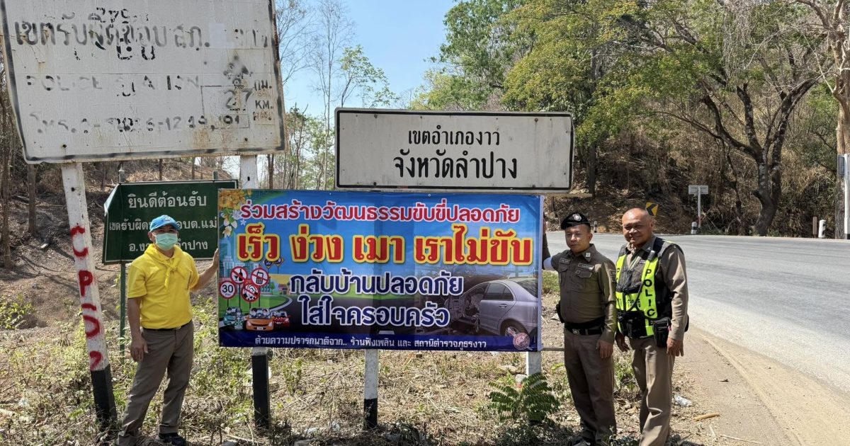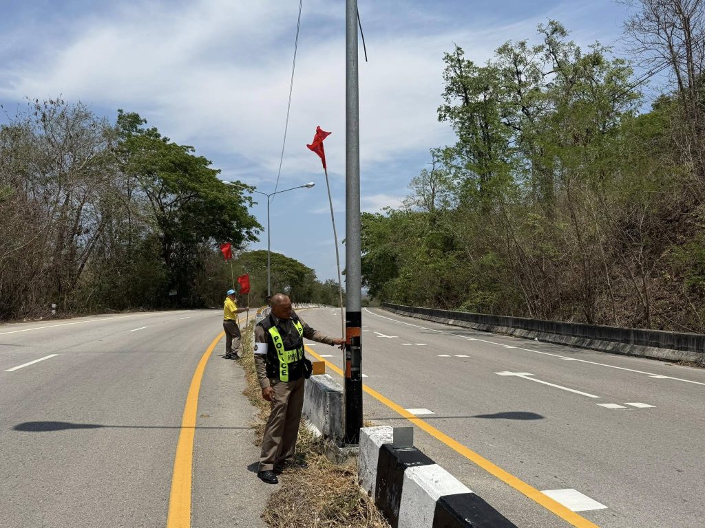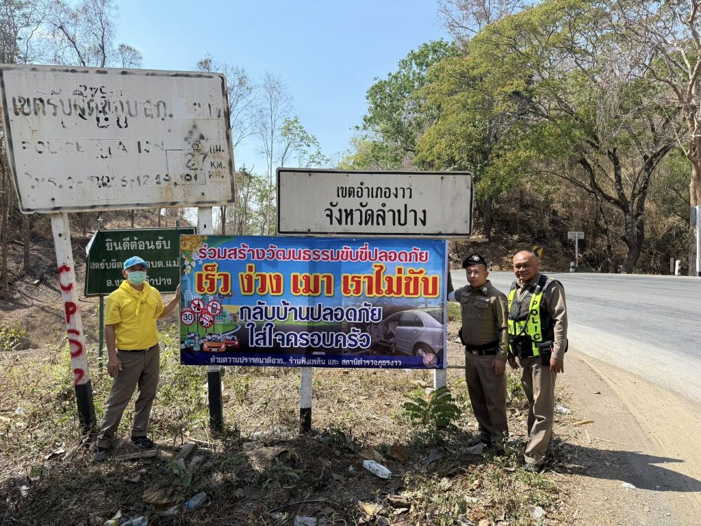 เจ้าหน้าที่ตำรวจจราจร สภ.งาวและชุดจิตอาสา สภ.งาว ร่วมออกสำรวจจุดเสี่ยง และติดตั้งป้ายเตือน, สัญญาณ(ธงแดง) แจ้งเตือนผู้ใช้รถใช้ถนน เพื่อป้องกัน และลดอุบัติเหตุทางถนนช่วงเทศกาลสงกรานต์ปี 2568